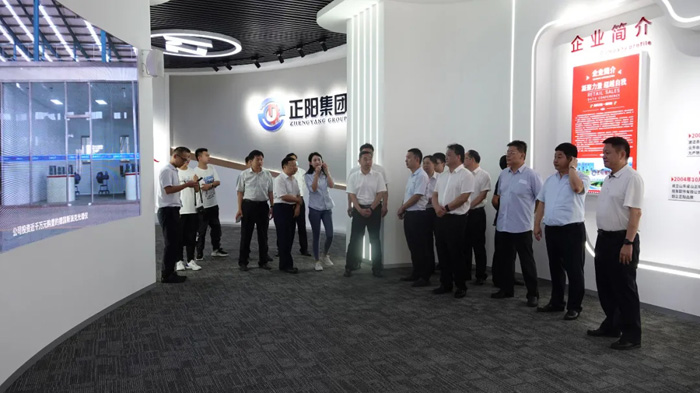 观摩过程中集团董事长与观摩团相关领导频繁互动,交流深入,为一行人详述了正阳集团的成长历程、发展蓝图、系列产品效能、科技创新、生产工艺以及企业环境生态等。